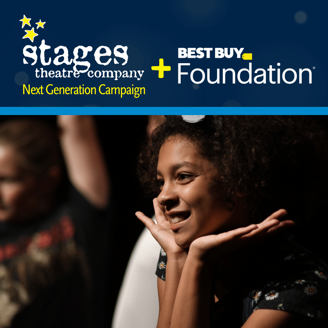 We’re thrilled to announce that Best Buy has awarded Stages Theatre Company $150,000 in support of our Next Generation Campaign! This gift brings us closer to securing and renovating a new Second Stage space — an adaptable home for early‑childhood classes, hands-on learning, internships, and Theatre for the Very Young performances.