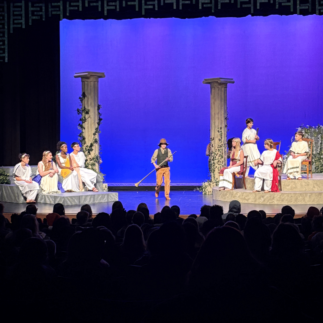 Meanwhile, Nick Bottom and the “rude mechanicals,” a group of tradesmen, rehearse a play of their own, giving the cast even more opportunities to showcase their humor, timing, and energy. Between mistaken identities, jokes, and love potions, our middle schoolers are thriving in every role, both onstage and behind the scenes, learning, laughing, and creating unforgettable theatre moments.